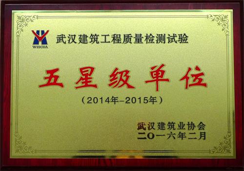 2013年我公司被武漢建筑業(yè)協(xié)會選為檢測試驗(yàn)工作委員會副主任委員單位,2012-2017年連續(xù)五年被評為先進(jìn)單位,2013、2015、2017年連續(xù)三屆被評為武漢市建設(shè)工程質(zhì)量檢測機(jī)構(gòu)五星級檢測單位。2017-20…